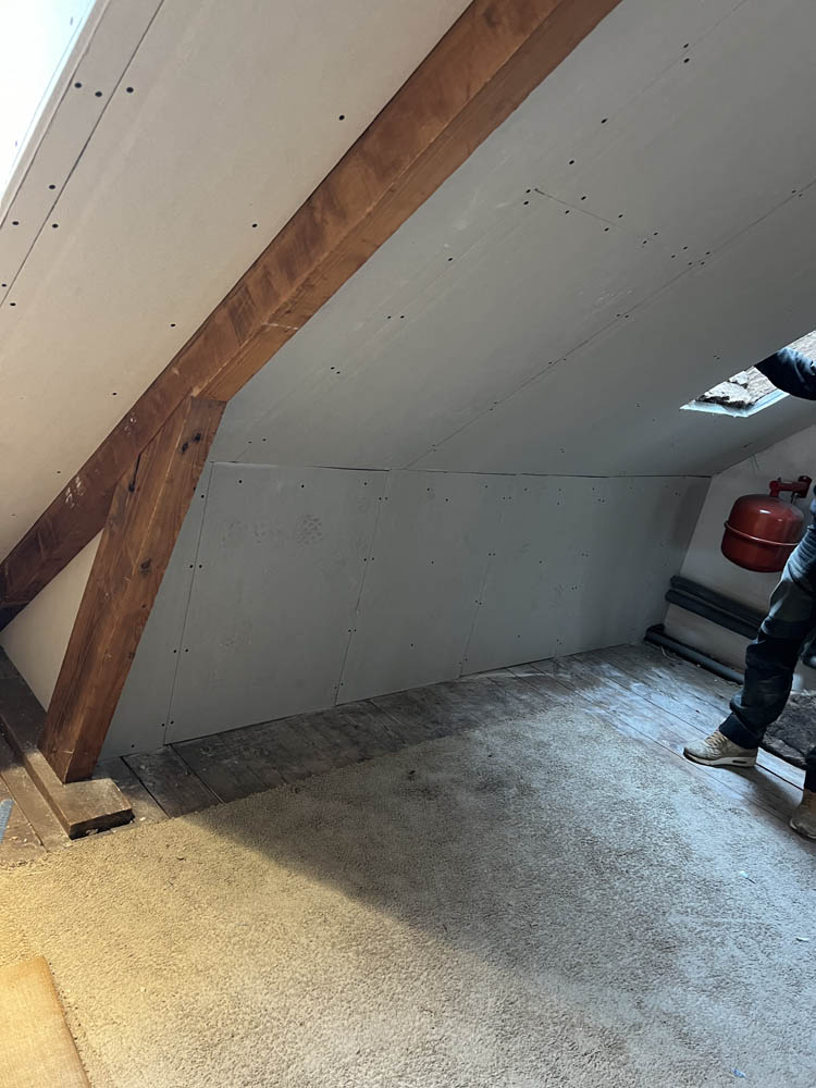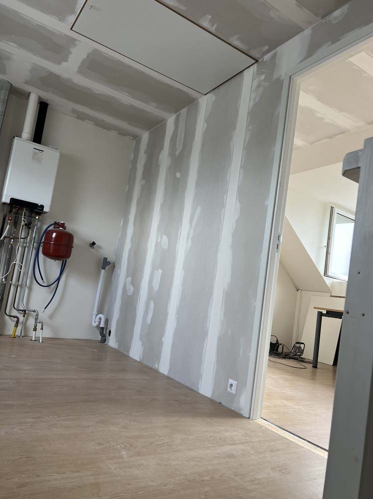 - Plaatsen van plafonds: Een strak afgewerkt plafond, inclusief isolatie voor comfort en energiebesparing.